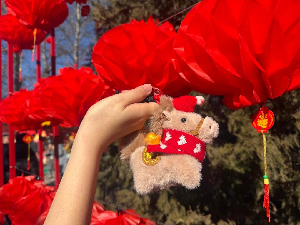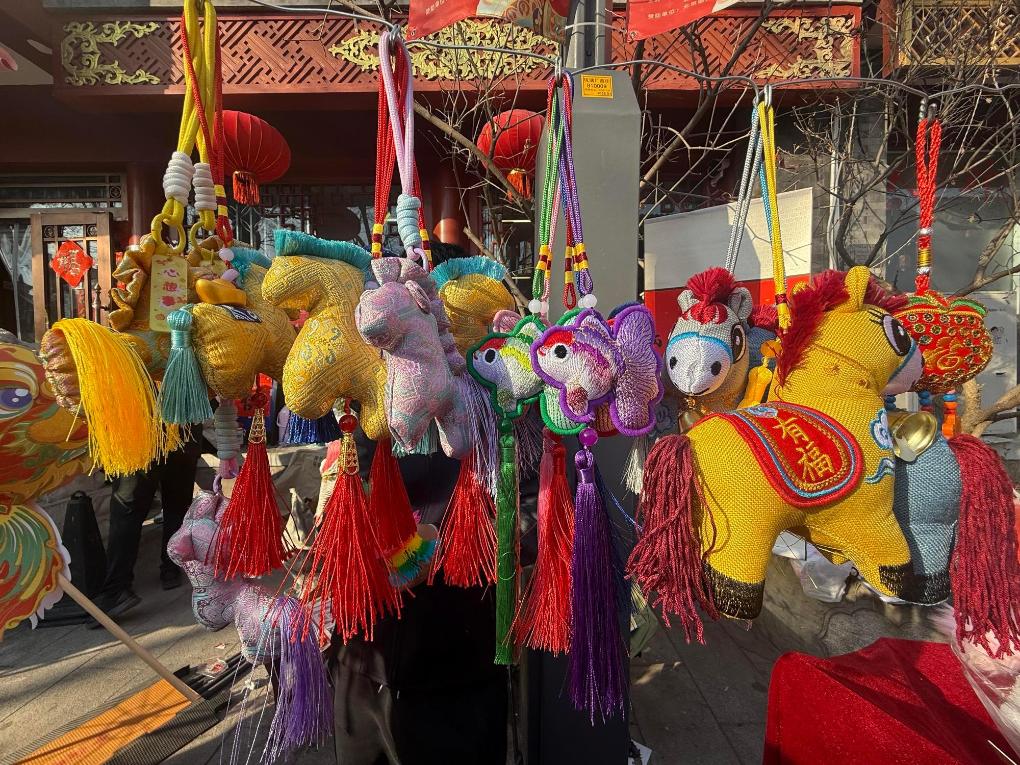 19日、琉璃廠の廠甸廟会で販売された午(うま)年モチーフの商品。(北京=新華社記者/常博深)