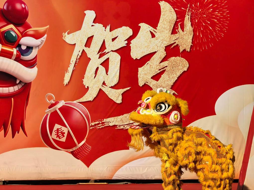 20日、海淀新春科学技術廟会で披露されたロボットによる獅子舞。(北京=新華社配信)