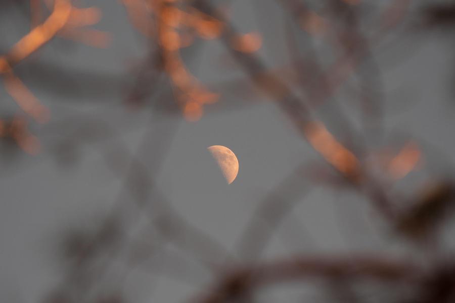 24日、黒竜江省富錦市で撮影された月。(富錦=新華社配信/曲玉宝)