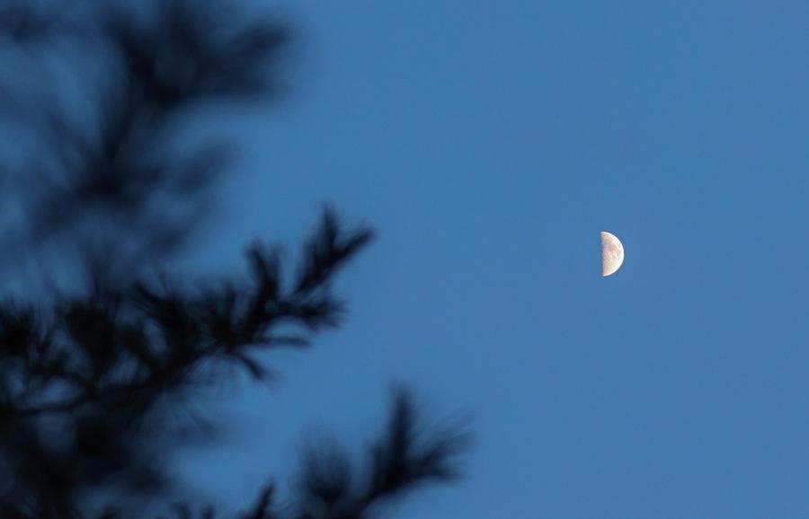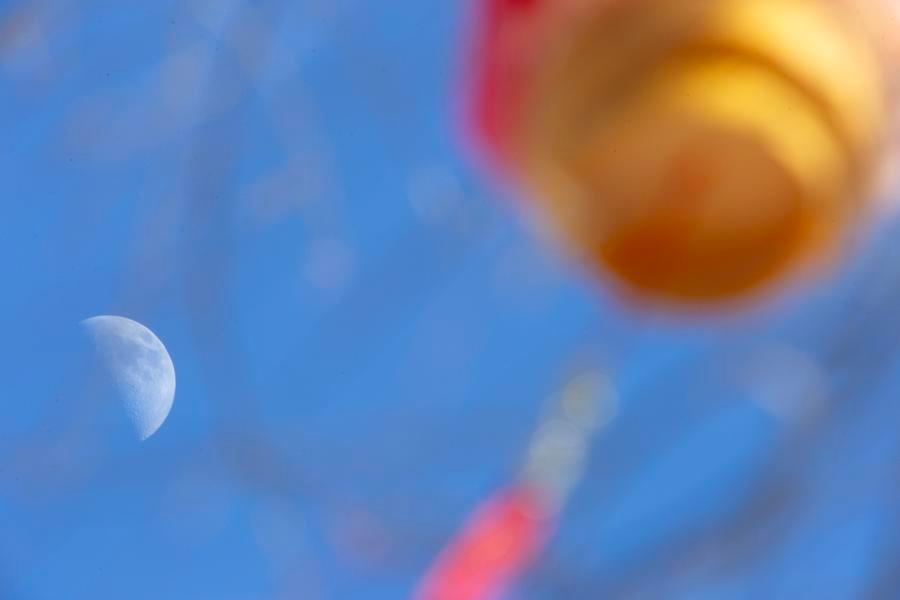 24日、黒竜江省の亜布力(ヤブリ)スキー場で撮影された月。(ハルビン=新華社配信/曽東)