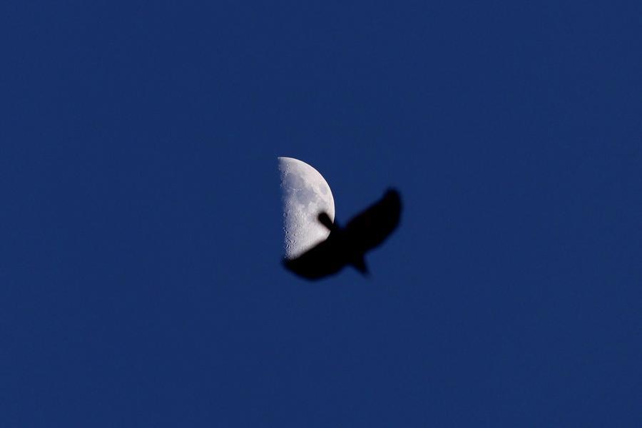 24日、黒竜江省チチハル市で撮影された月。(チチハル=新華社配信/王勇剛)