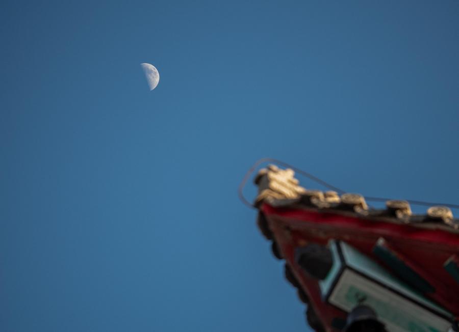 24日、黒竜江省ハルビン市で撮影された月。(ドローンから、ハルビン=新華社配信/劉大鵬)