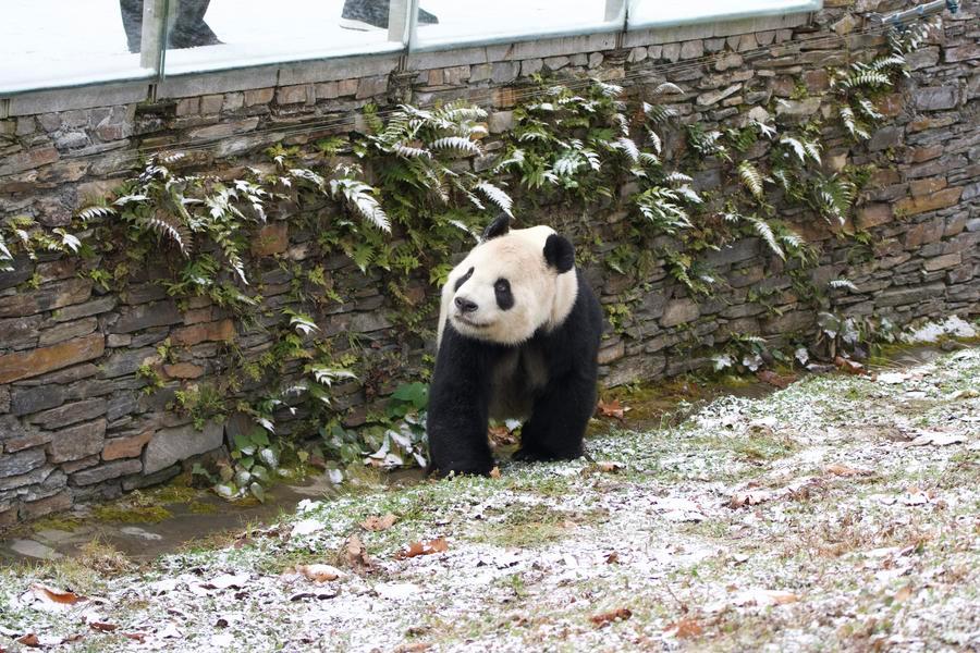 散歩するリーリー。(1月4日撮影、成都=新華社配信/Panda365提供)