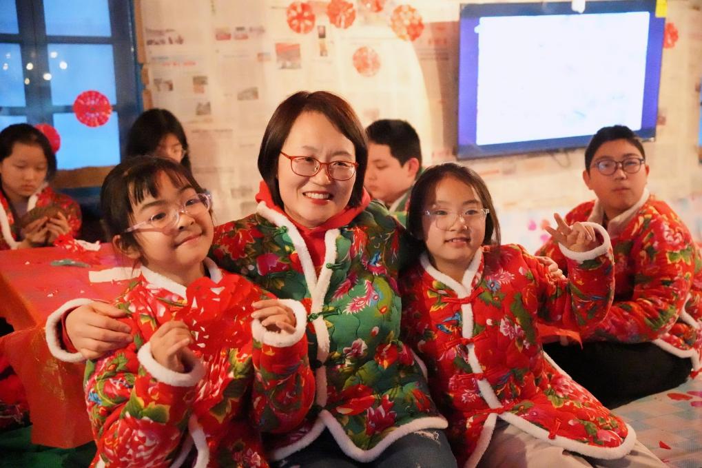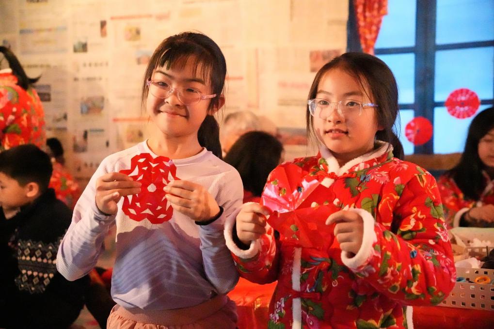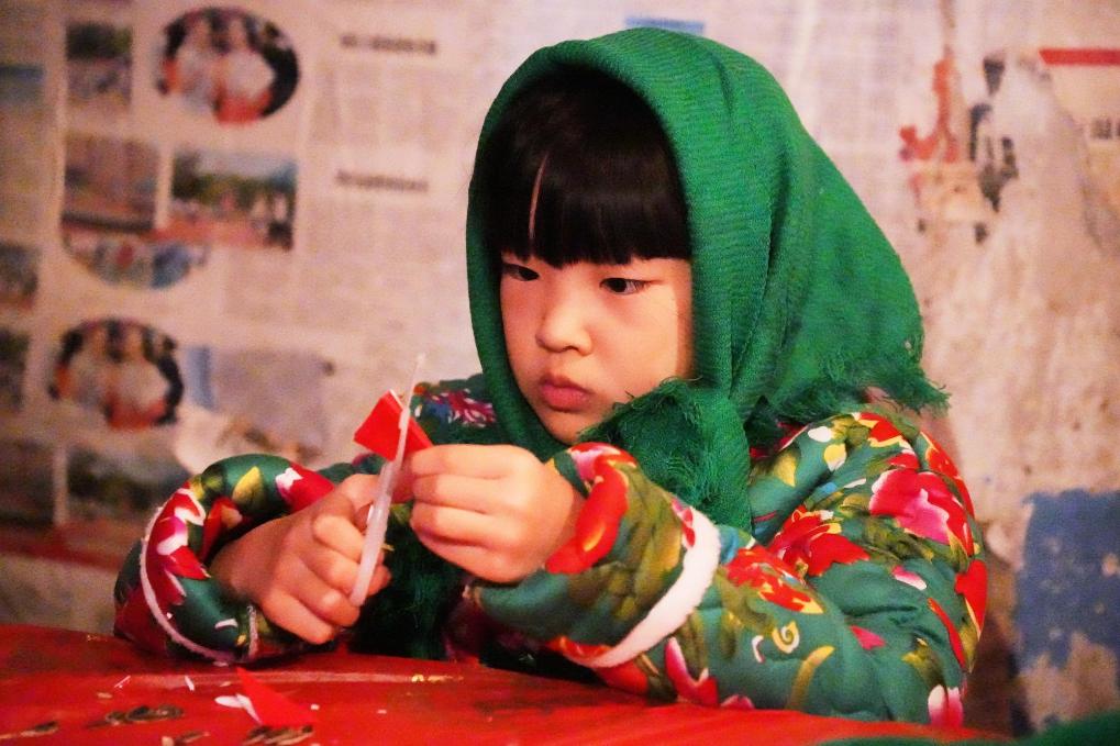25日、黒竜江省鉄力市の農家で完成した「窓花」(窓に貼る切り絵)を披露する観光客。(伊春=新華社記者/王祚)