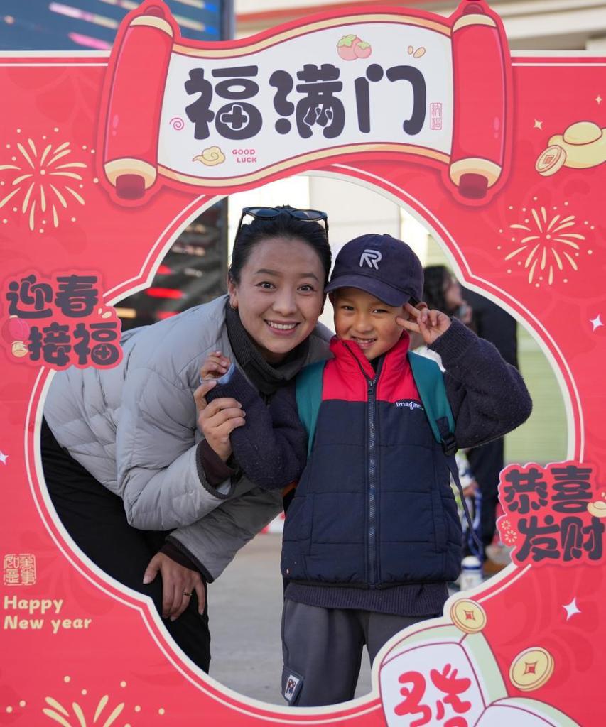 2日、西蔵自治区ラサ市の江蘇実験幼稚園で、記念撮影する子どもと保護者。(ラサ=新華社記者/晋美多吉)