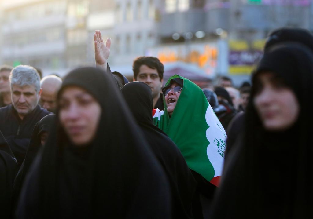 1日、イラン首都テヘランで集会を開き、最高指導者ハメネイ師を悼む人々。(テヘラン=新華社配信)