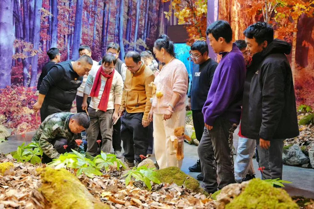 村民の案内で、頭山村の屋内高麗人参掘り体験プログラムに参加する観光客。(2025年12月12日撮影、長春=新華社配信)