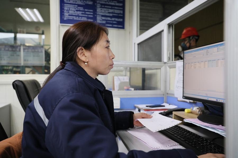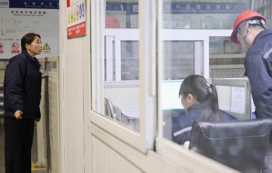 2月25日、天津立中車輪で資材の在庫品点検を行う郭紅静さん。(天津=新華社記者/李然)