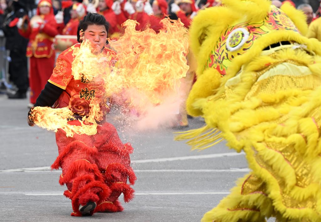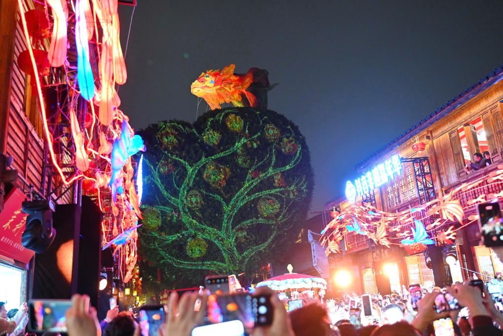 3日、山東省青島市の西海岸新区で行われた元宵節のパフォーマンス。 (青島=新華社記者/李紫恒)