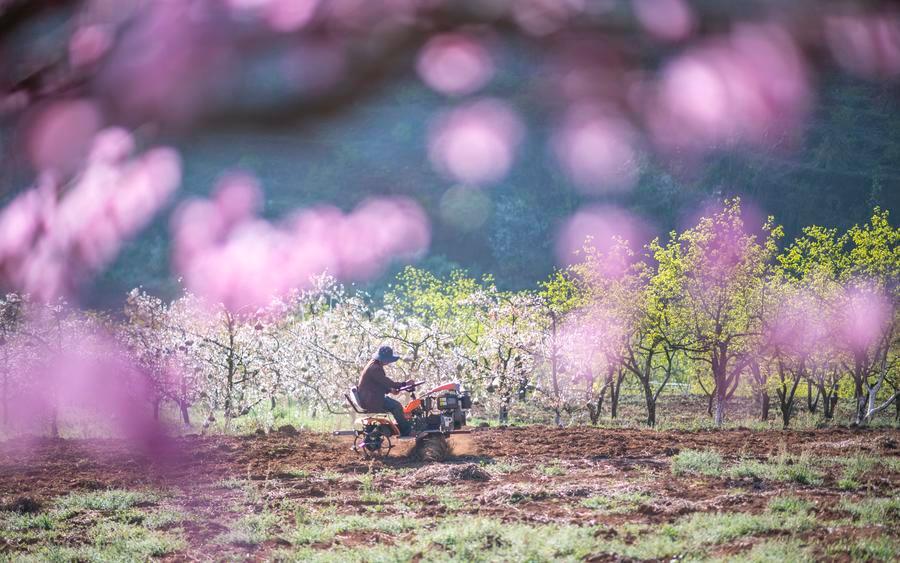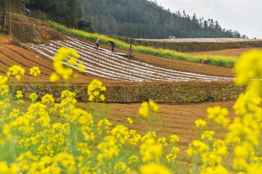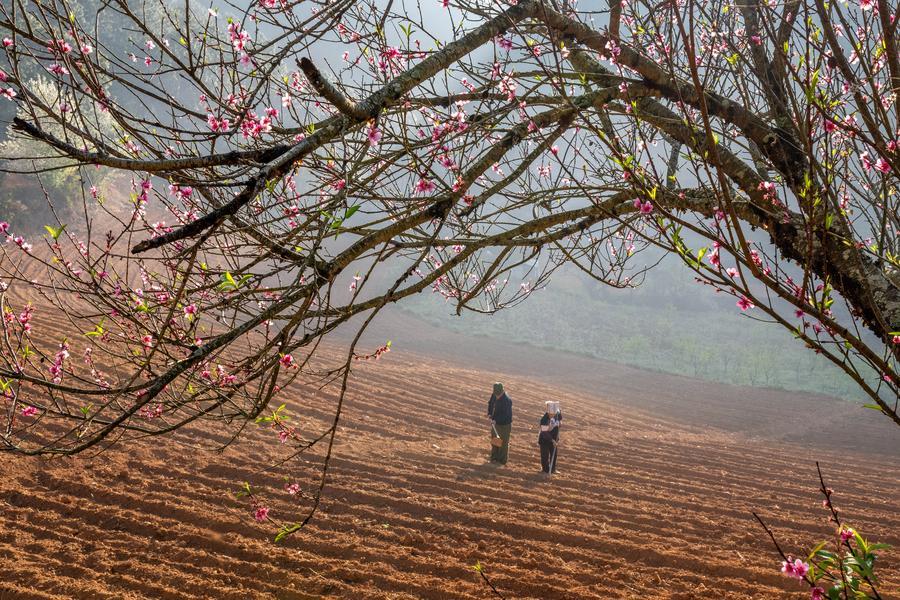 2月27日、雲南省文山チワン族ミャオ族自治州文山市で畑を耕す地元住民。(文山=新華社配信/熊平祥)