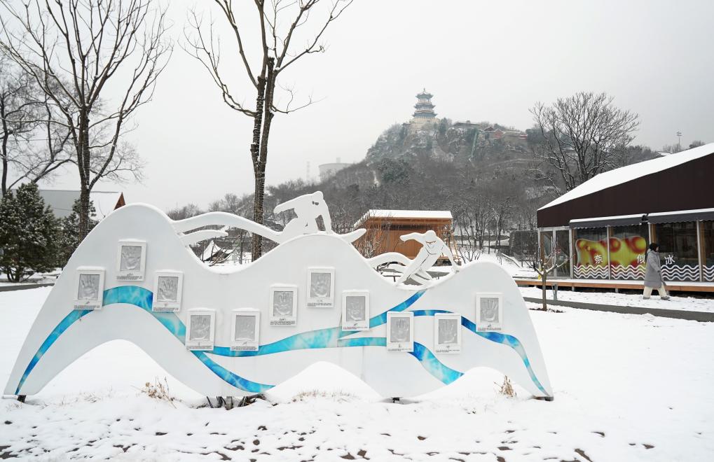 5日、雪化粧した首鋼園。(北京=新華社記者/張晨霖)