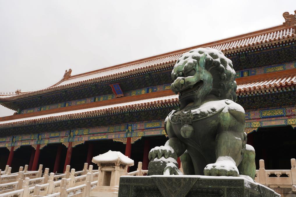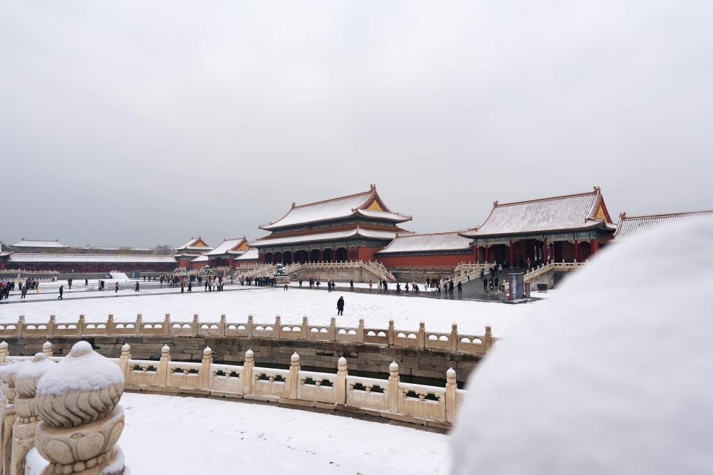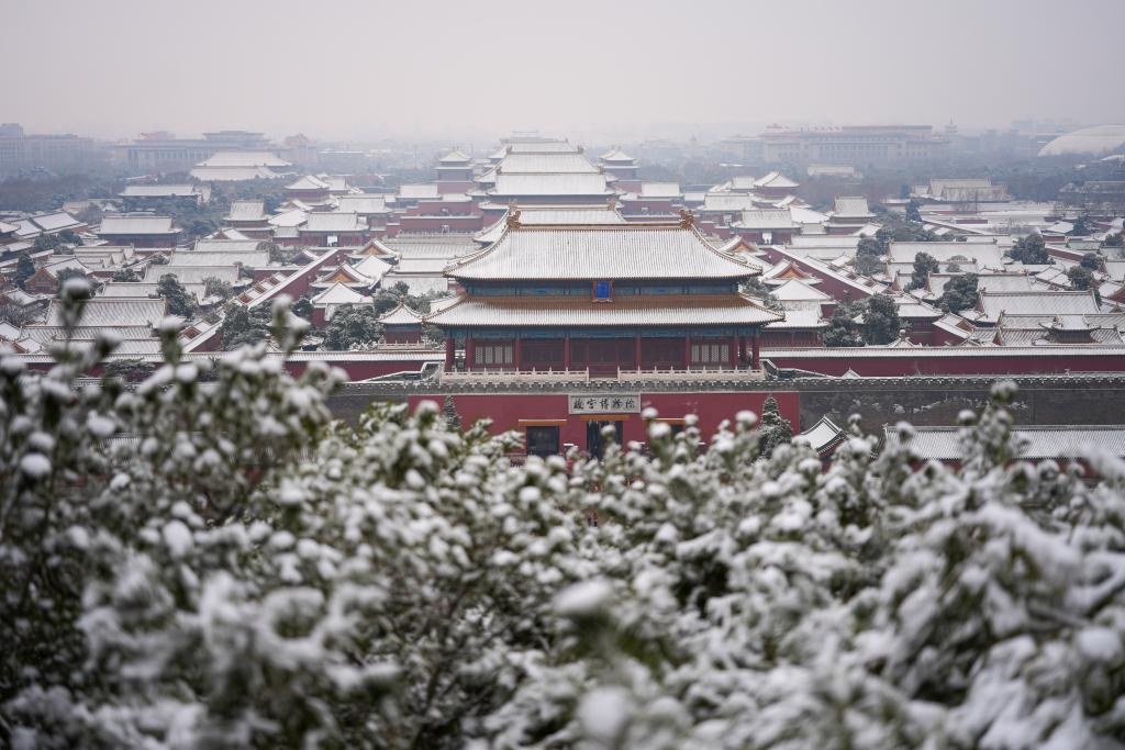 5日、雪化粧した故宮。(北京=新華社記者/謝晗)