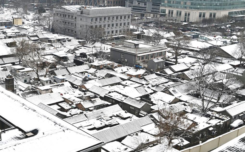 5日、北京市の宣武門近くに広がる雪景色。(北京=新華社記者/陳曄華)