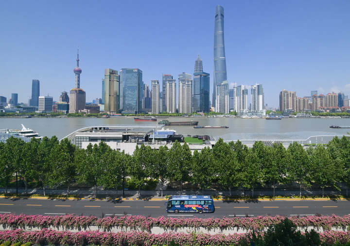 上海市の外灘から見た外資銀行の並ぶ陸家嘴エリア。(上海=新華社記者/李賀)