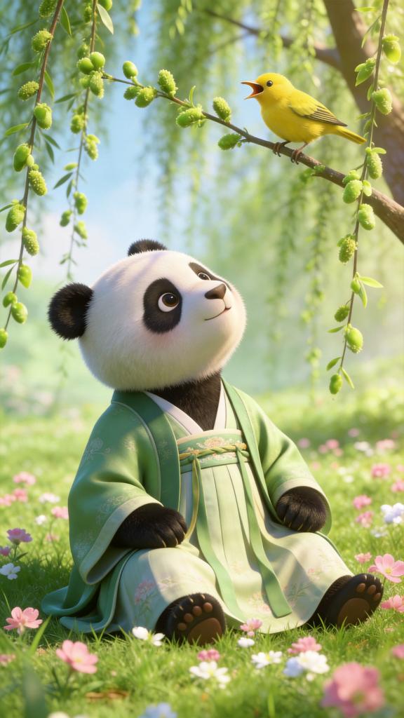 コウライウグイスが鳴く様子を表す壁紙。(北京=新華社配信)