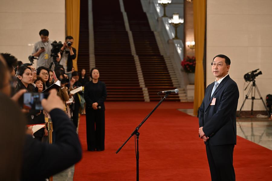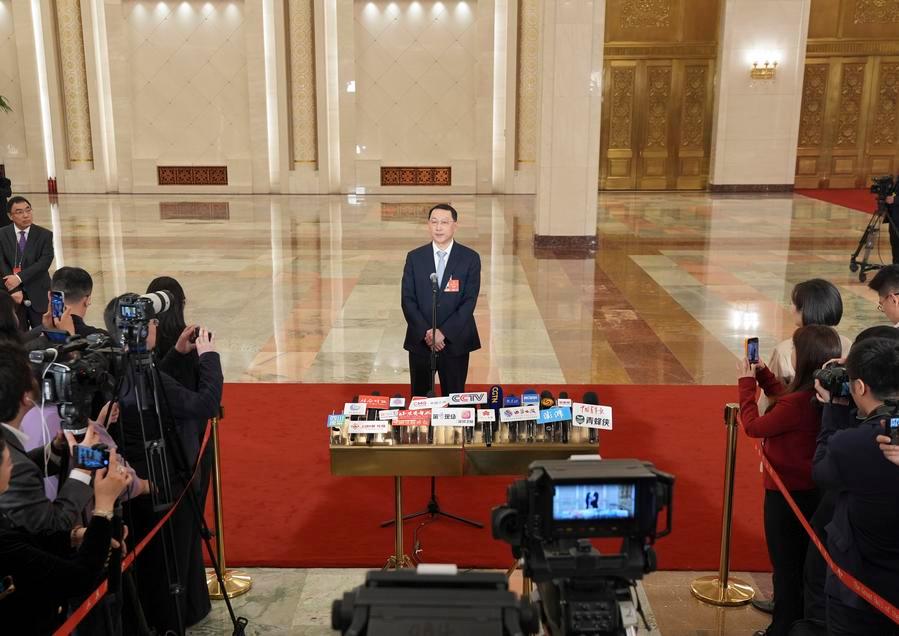 【新華社北京3月12日】中国の第14期全国人民代表大会(全人代)第4回会議は12日、北京の人民大会堂で3回目の「部長通路」(閣僚らを対象とした特設スペース取材)を行った。
