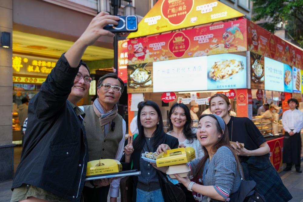 12日、広府廟会でグルメを味わう外国人観光客。(広州=新華社記者/呉魯)