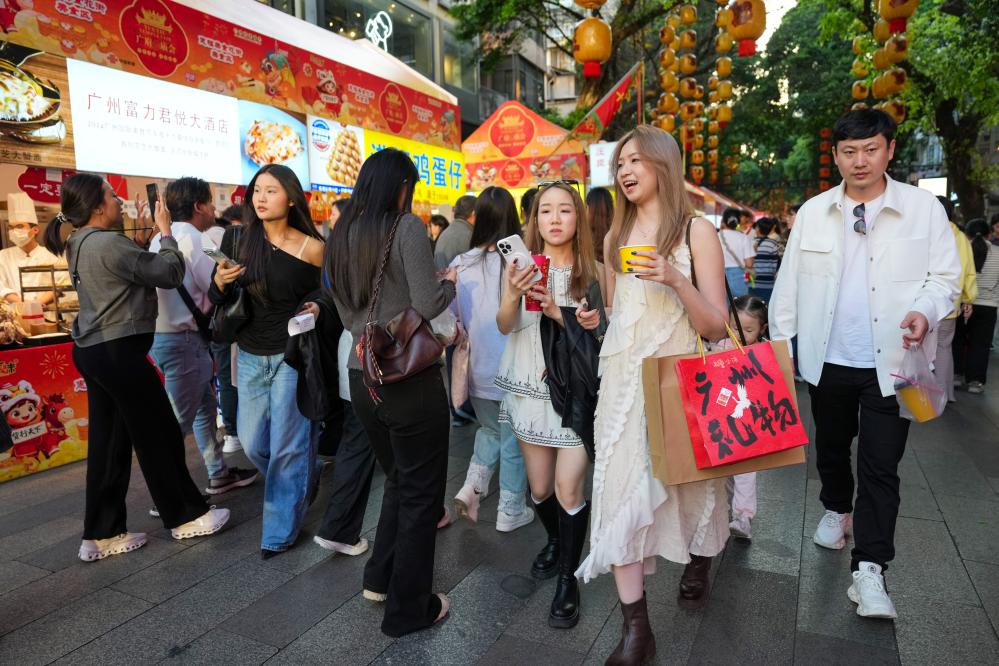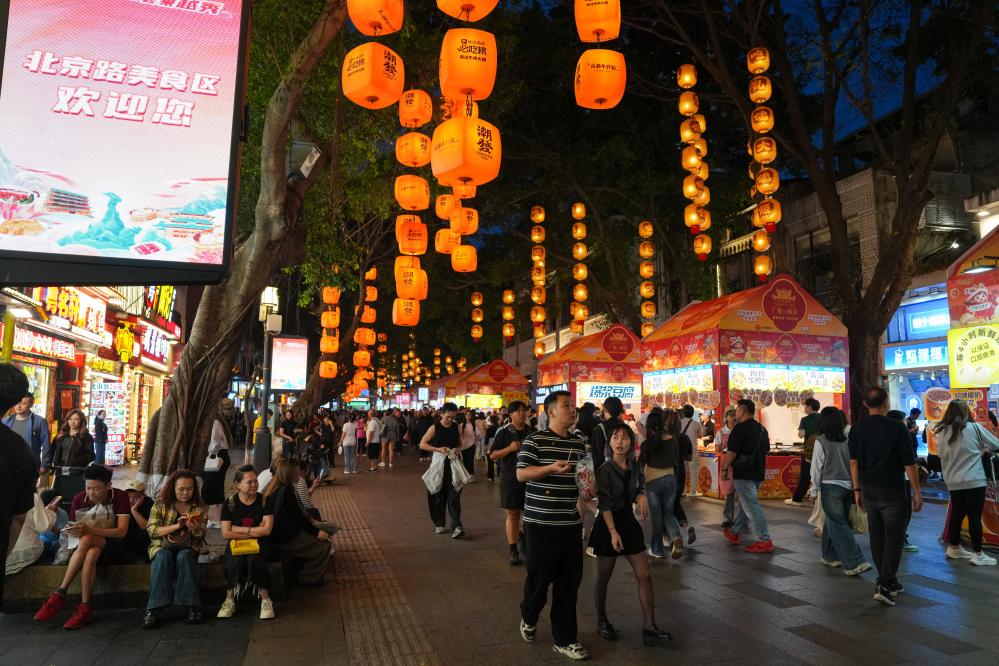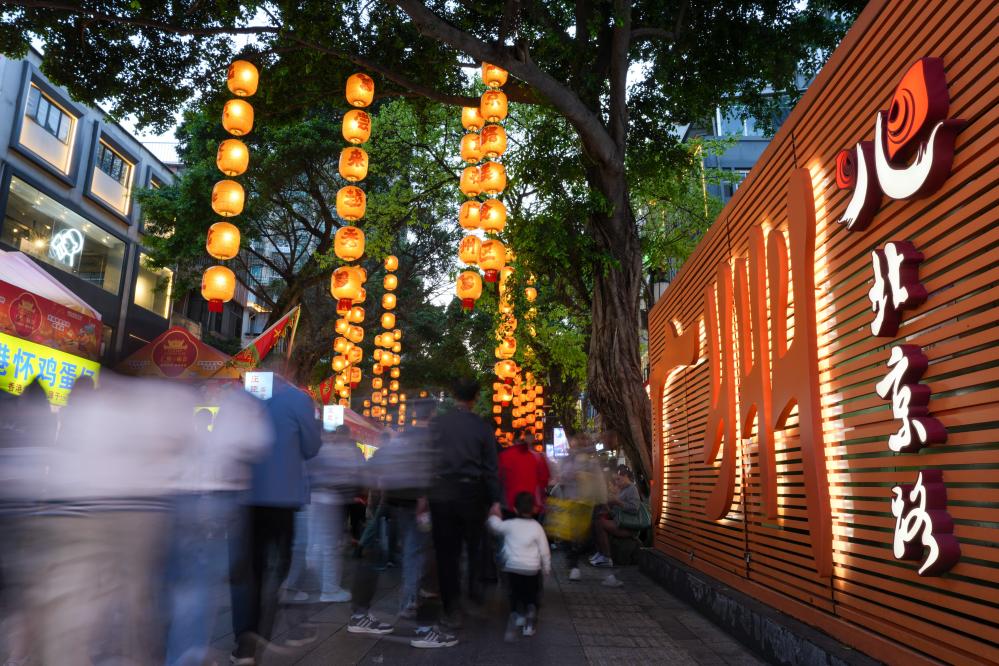 12日、北京路歩行街を訪れた人たち。(広州=新華社記者/呉魯)
