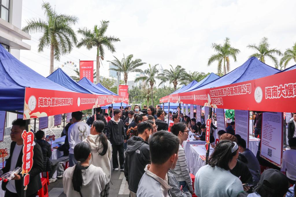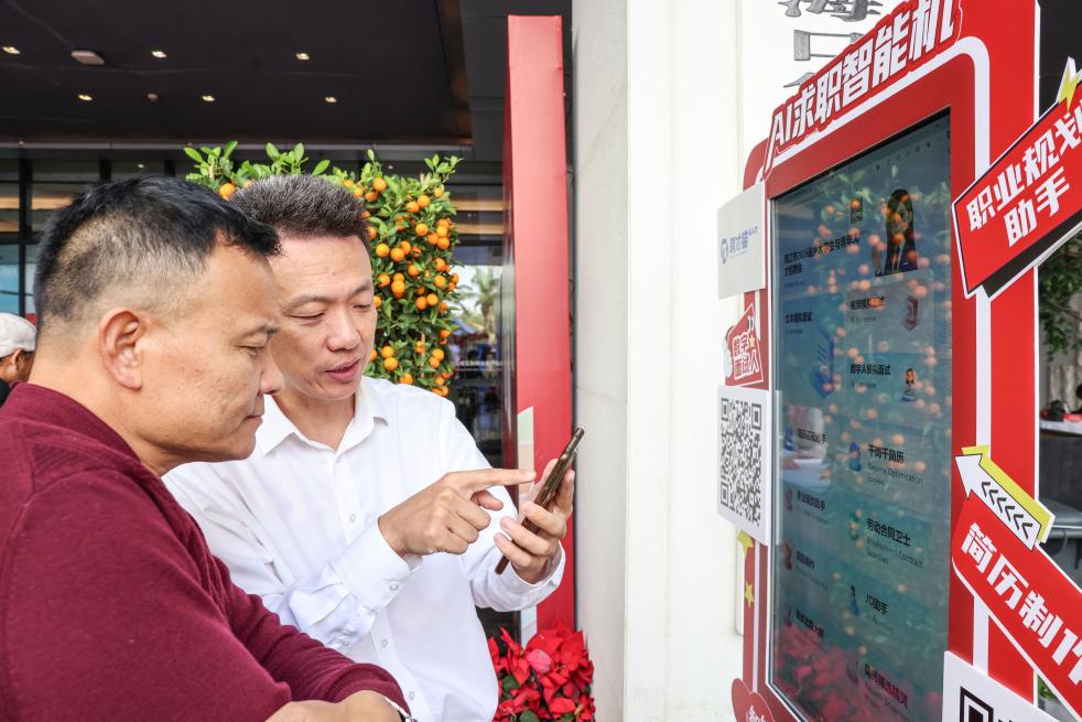 【新華社海口3月13日】中国海南省海口市で13日、春節(旧正月)で帰省している大学生と若手人材向けの就職フェアが開かれた。海口復興城インターネット情報産業パークの会場では、サービス効率を高めるため人工知能(AI)機器が導入されたほか、オンラインサービスとも連動し、若い人材の効率的な就職活動を支援した。