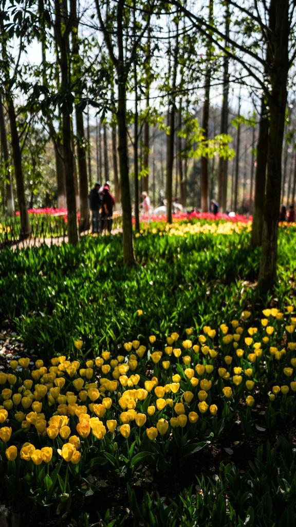 12日、竜架山国家森林公園のチューリップ畑。(竜里=新華社記者/陶亮)