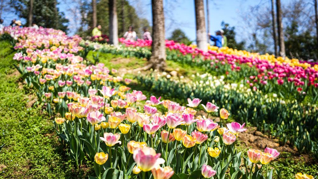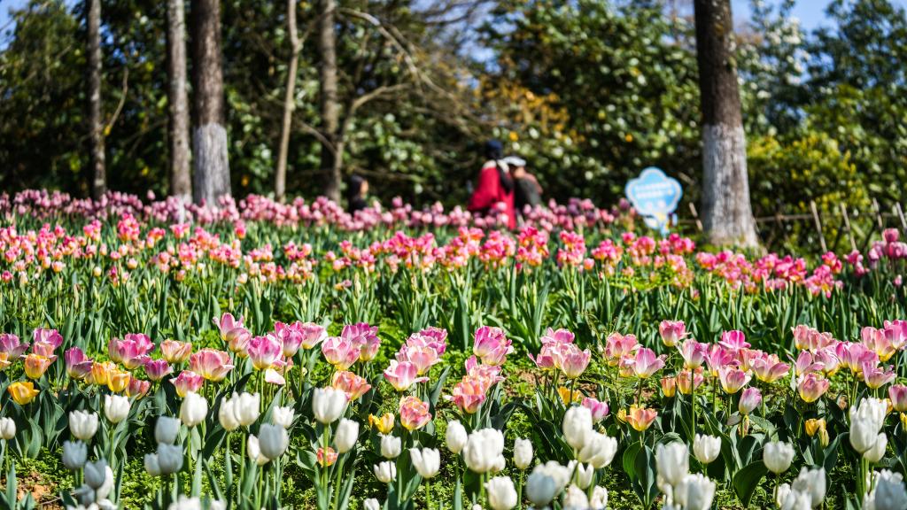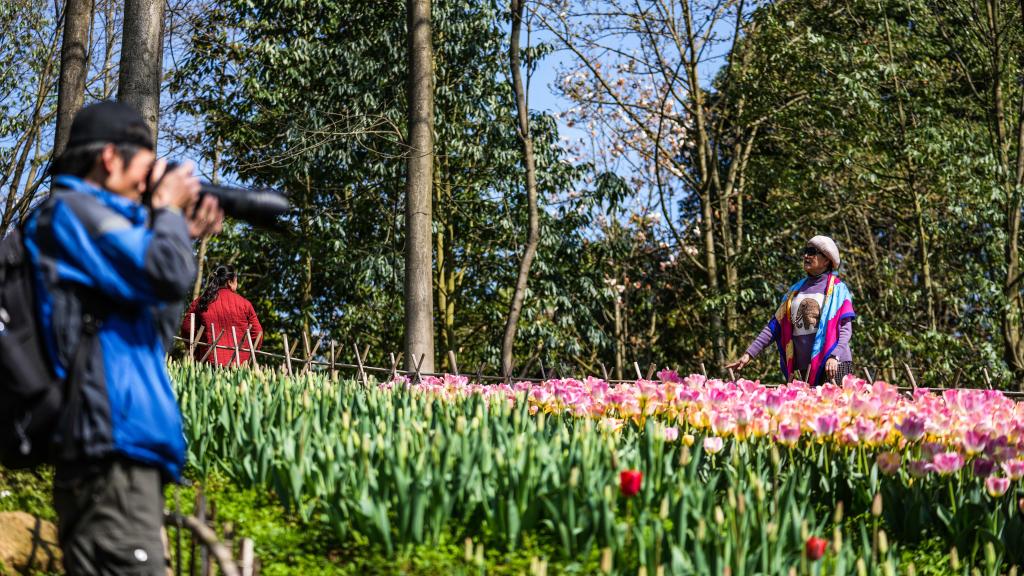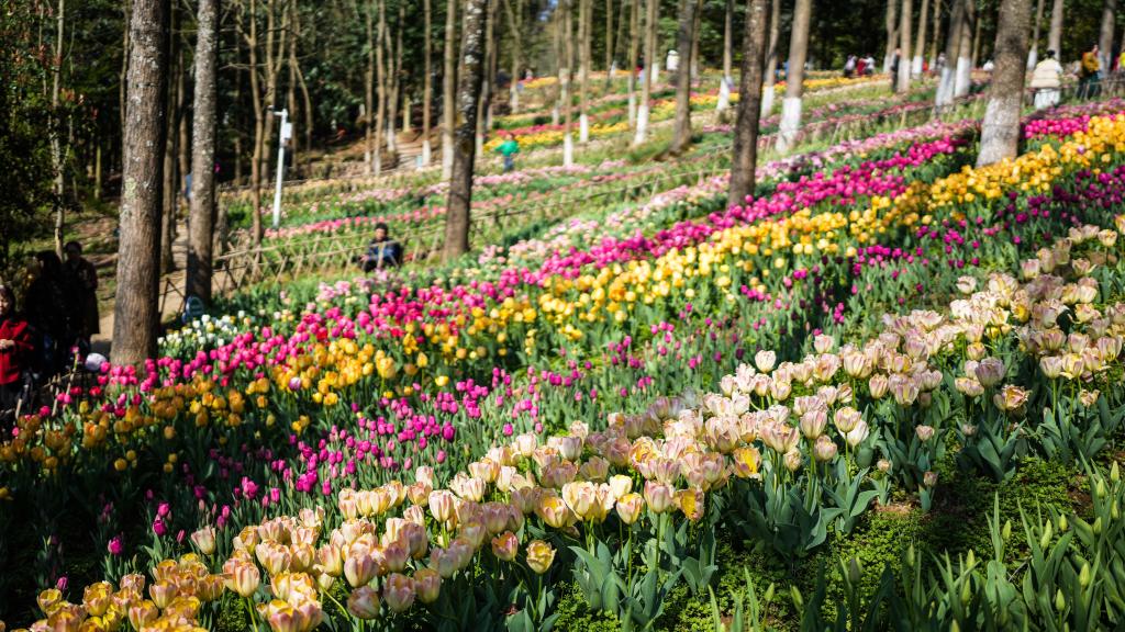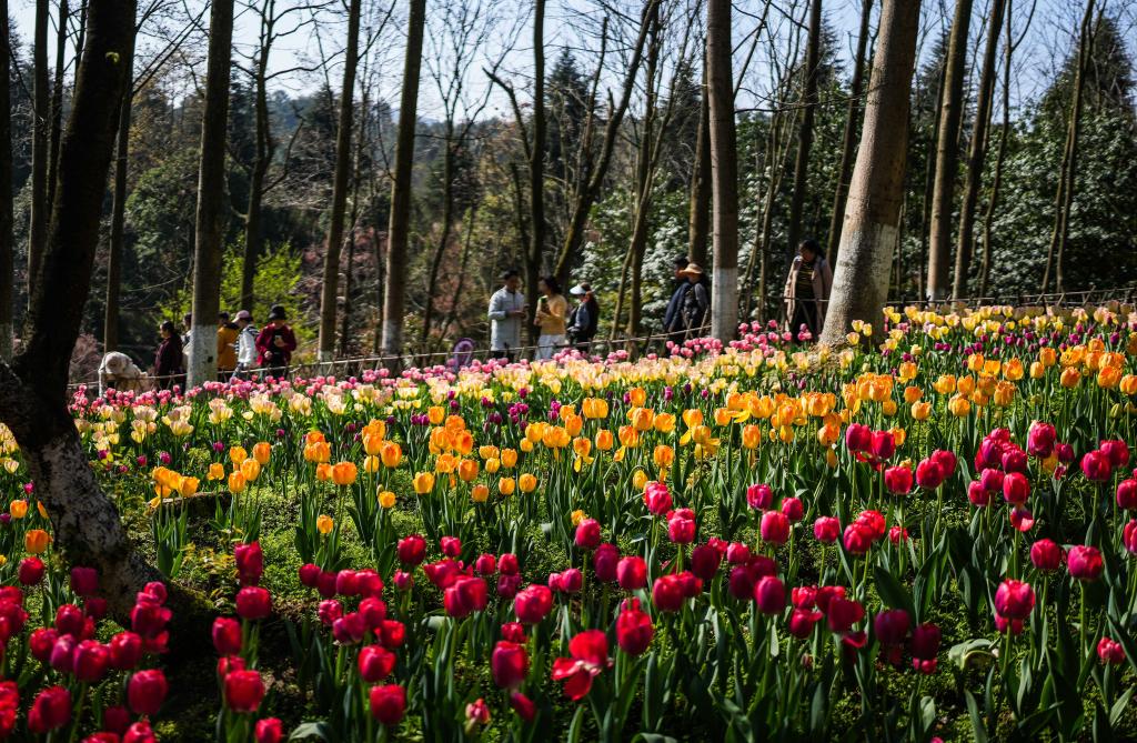 【新華社貴陽3月13日】中国貴州省黔南(けんなん)プイ族ミャオ族自治州竜里県の竜架山国家森林公園で色鮮やかなチューリップが次々と開花し、各地から観光客が訪れている。