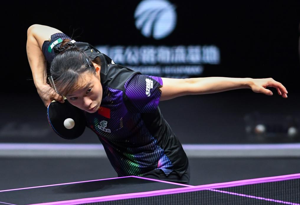14日、リターンする張本美和。(重慶=新華社記者/唐奕)