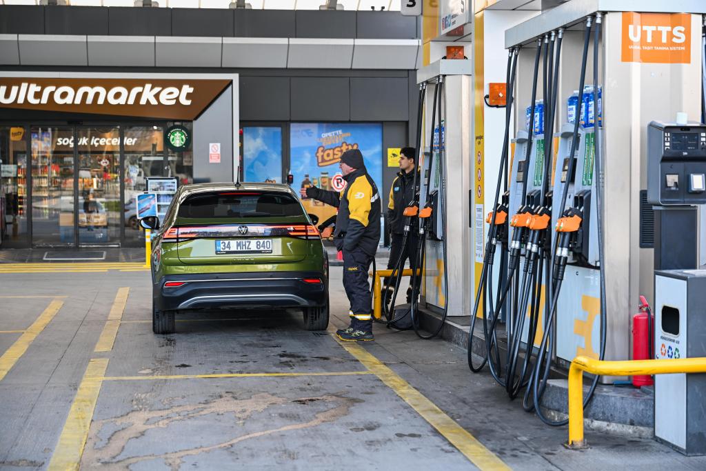 16日、トルコ・イスタンブールのガソリンスタンドで給油する車。(イスタンブール=新華社記者/劉磊)