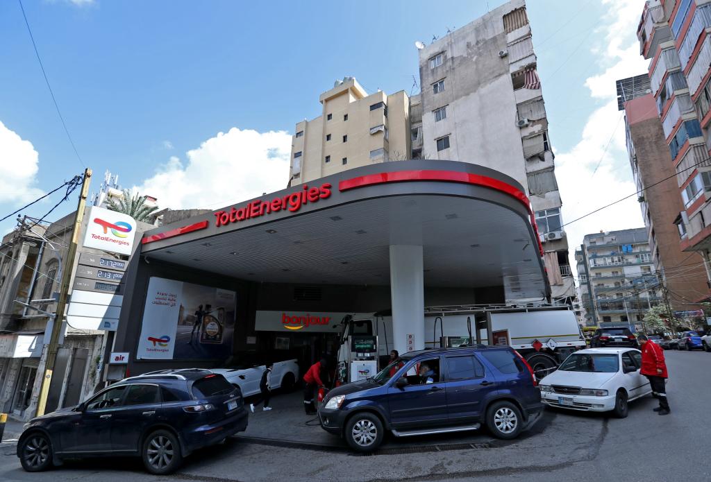16日、レバノン・ベイルートのガソリンスタンドで列を作る車。(ベイルート=新華社配信)