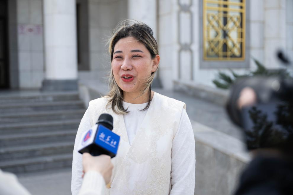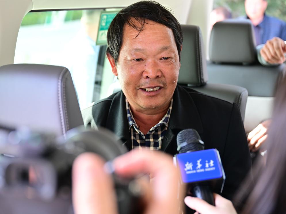 17日、トルクメニスタン・セラフスの出入国検査所で新華社の取材を受ける中国人退避者。(セラフス=新華社記者/李任滋)