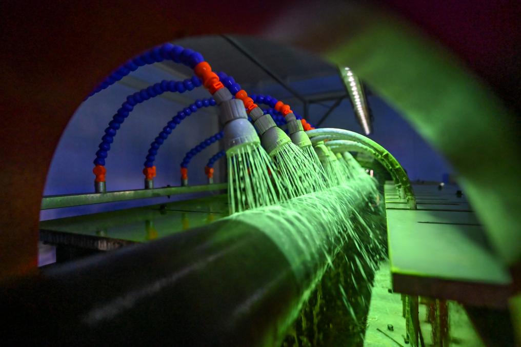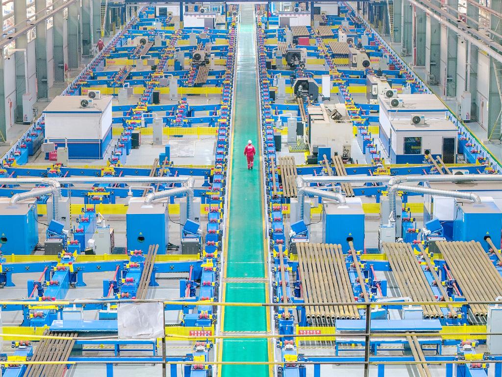 工場は先進的な自動制御システムやオンライン点検技術、IoT(モノのインターネット)データシステムの統合を通じ、ドリルパイプの洗浄、点検、保守から塗装、マーキングに至る全工程を自動化。海上石油・天然ガスの効率的な探査・開発を力強く支えている。