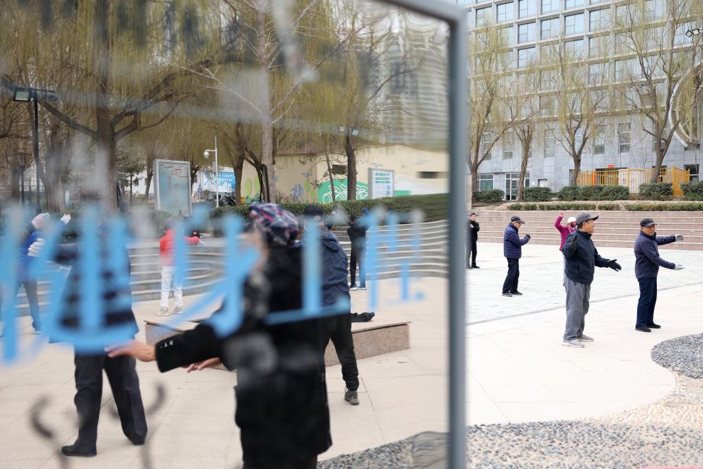 18日、蘭州市体育公園の広場で体を動かす市民。(蘭州=新華社記者/陳斌)