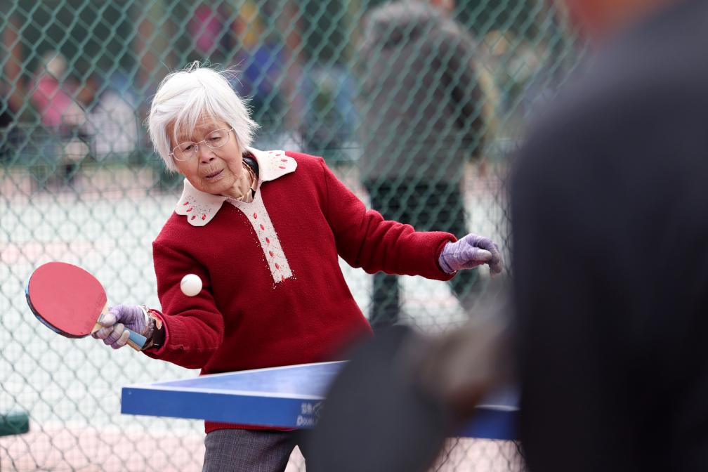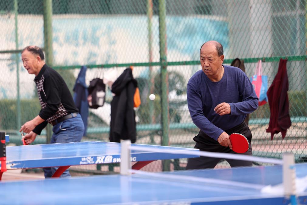 17日、蘭州市体育公園で卓球を楽しむ高齢者。(蘭州=新華社記者/陳斌)