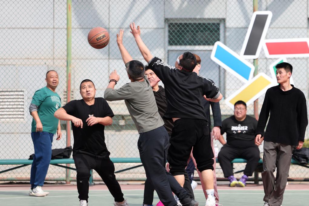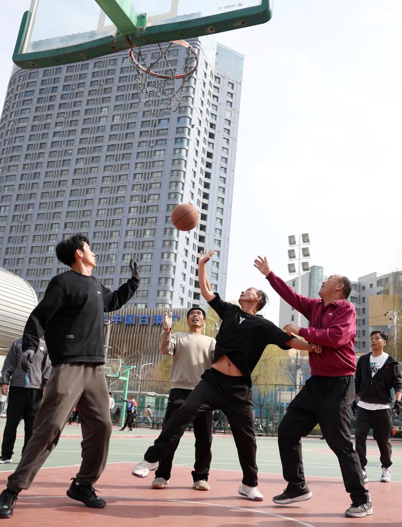 17日、蘭州市体育公園でバスケットボールを楽しむ市民。(蘭州=新華社記者/陳斌)