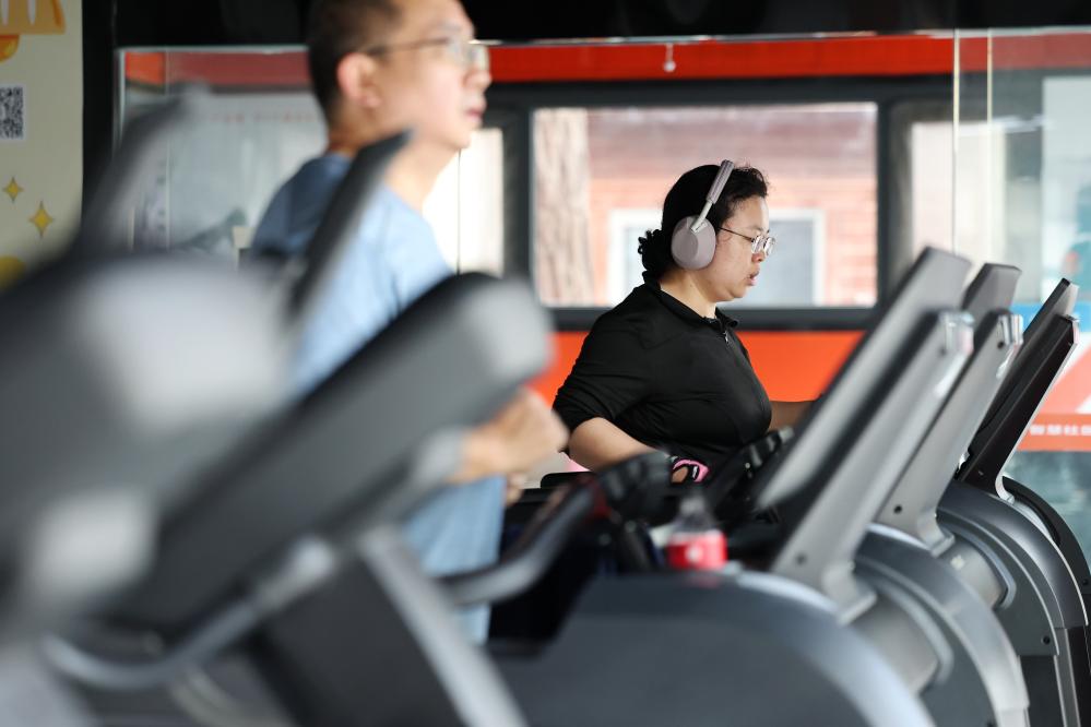 17日、蘭州市城関区のスマート社区フィットネスセンターで走る市民。(蘭州=新華社記者/陳斌)