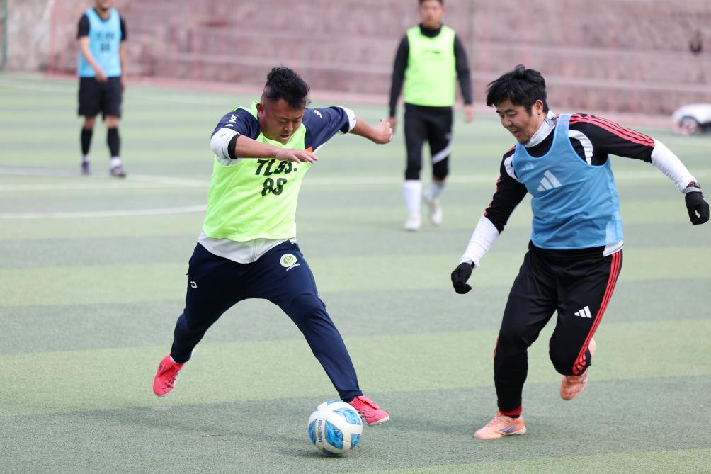 17日、蘭州市体育公園でサッカーを楽しむ愛好家。(蘭州=新華社記者/陳斌)