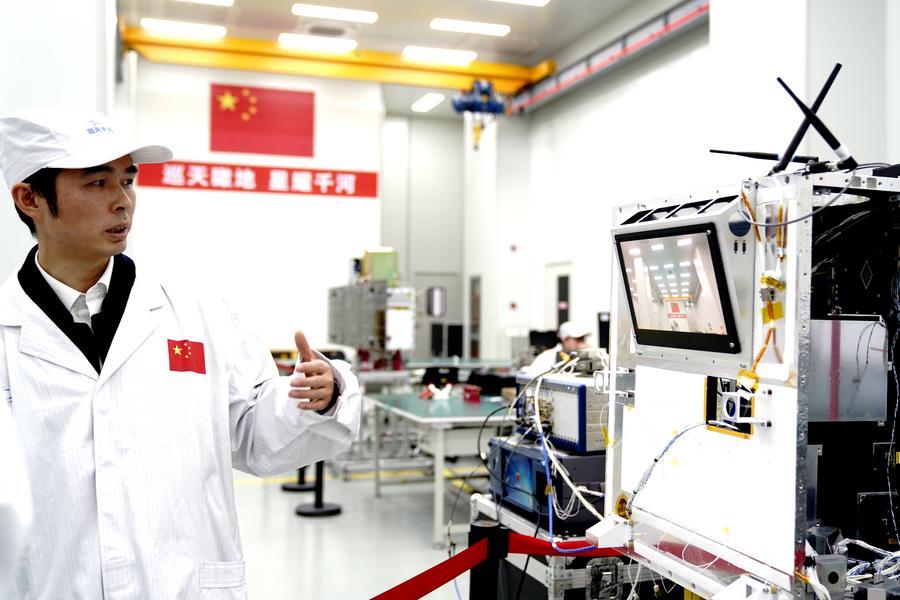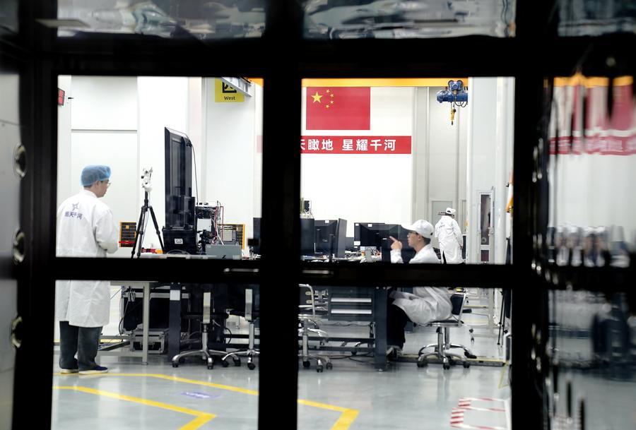 17日、上海巡天千河空間技術で撮影したリモートセンシング衛星。(上海=新華社記者/張建松)