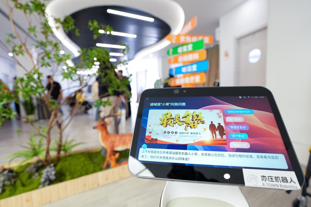 18日、栄華街道で運用を開始したスマート康養ロボット高齢者介護ステーション。(北京=新華社記者/鞠煥宗)