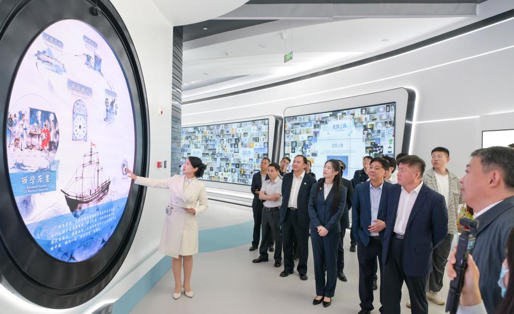 【新華社ボアオ3月21日】中国海南省瓊海(けいかい)市博鰲(ボアオ)鎮東嶼島にある中国航海博物館ボアオデジタル館で19日、「一帯一路」共同建設構想をテーマにしたデジタル展「シルクロードの光・ボアオのスマート空間」が開かれた。マルチディスプレーや裸眼3D、デュアルスクリーン連動など、最先端のデジタル技術を駆使し、静的な展示と動的な体験を高度に融合させた展示となっている。