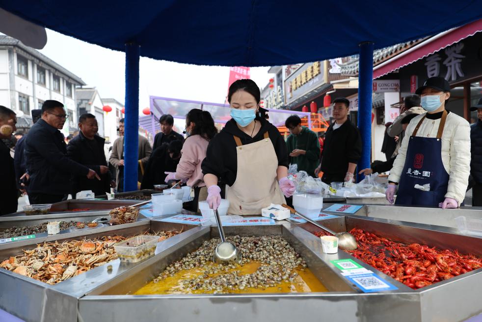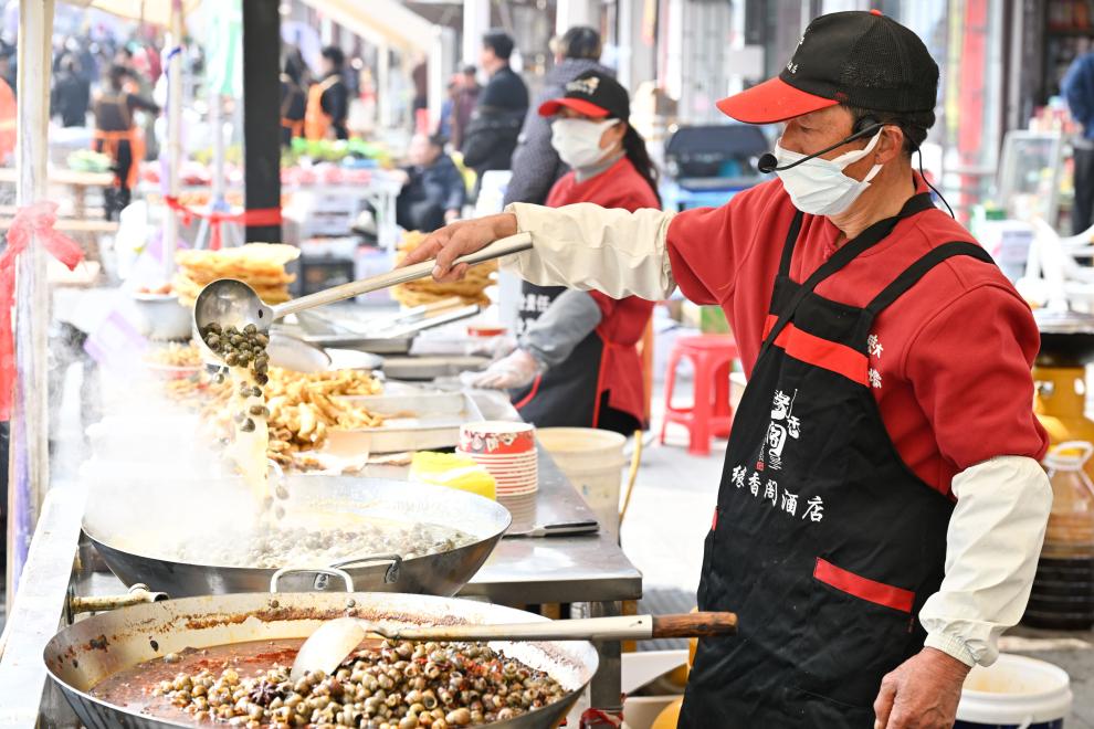 【新華社淮安3月23日】中国江蘇省淮安(わいあん)市洪沢区蔣壩(しょうは)鎮で21、22両日、「タニシ美食観光フェア」が開かれ、多くの観光客が訪れて旬の味に舌鼓を打った。二十四節気の一つ「清明節」(今年は4月5日)が近づくこの時期はタニシの身が最も太りうま味を増す。