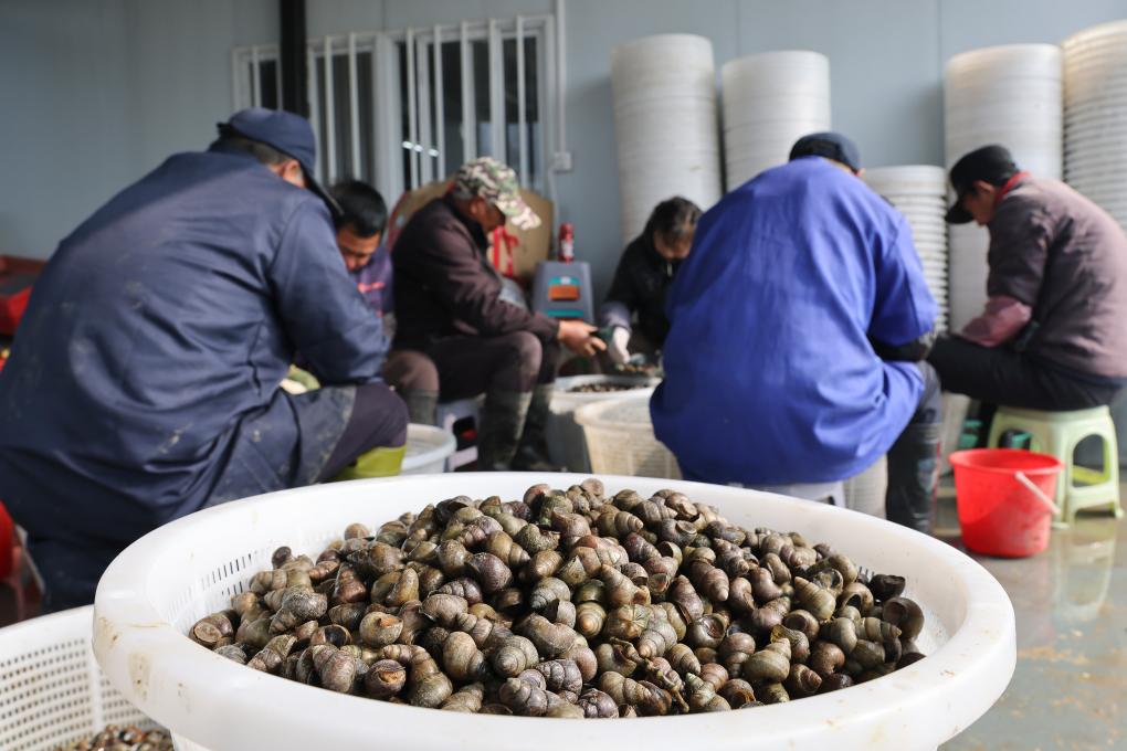 同鎮はここ数年、「小さなタニシで大きな産業を興す」という発展理念を掲げ、育種・養殖、加工・販売、観光・レジャー、科学普及・研究などの機能を統合した2千ムー(約133ヘクタール)のタニシ産業モデル拠点を整備し、産業チェーン全体的の発展を推し進めている。現在、同鎮でタニシの養殖、加工、販売に携わる人は千人を超え、タニシを特色とする飲食店は約40店、年間生産額は1億元(1元=約23円)に達している。