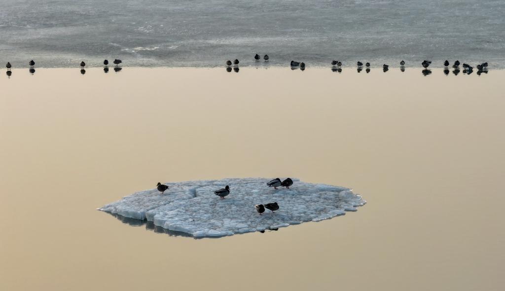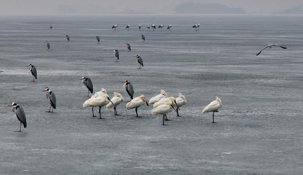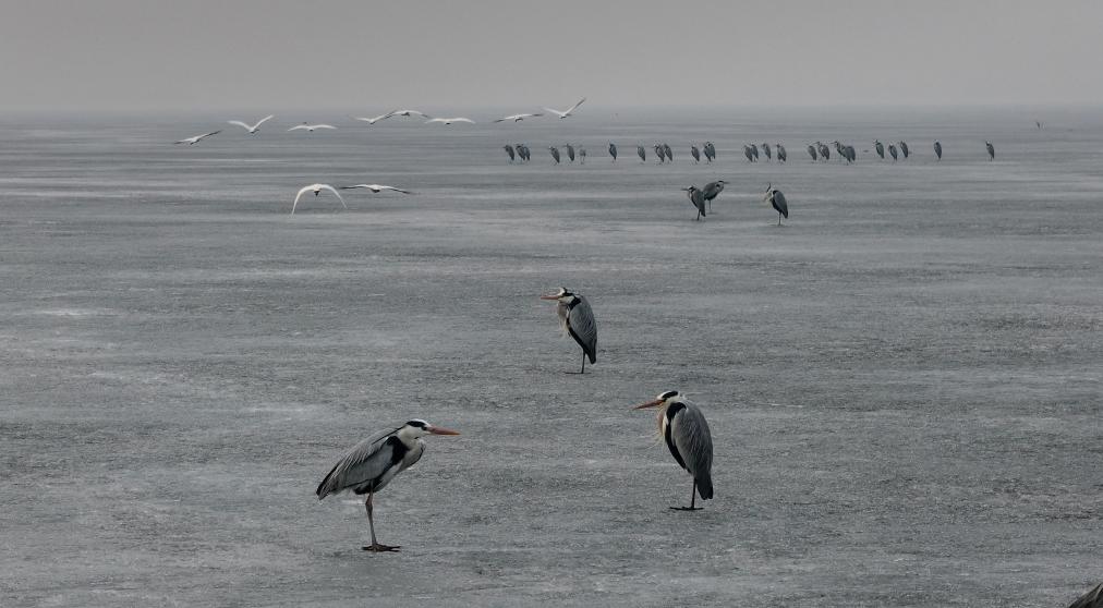 【新華社ハルビン3月23日】中国黒竜江省ハルビン市を流れる松花江に多数の渡り鳥が飛来した。凍った川面で羽を休め、水中で戯れ、餌を探す姿は、春の息吹を感じさせる。
