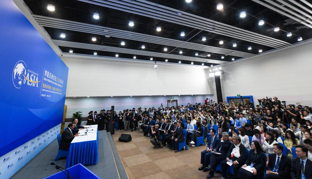 24日、ボアオ・アジアフォーラム年次総会の記者会見と旗艦報告書発表会の様子。(ボアオ=新華社記者/楊冠宇)