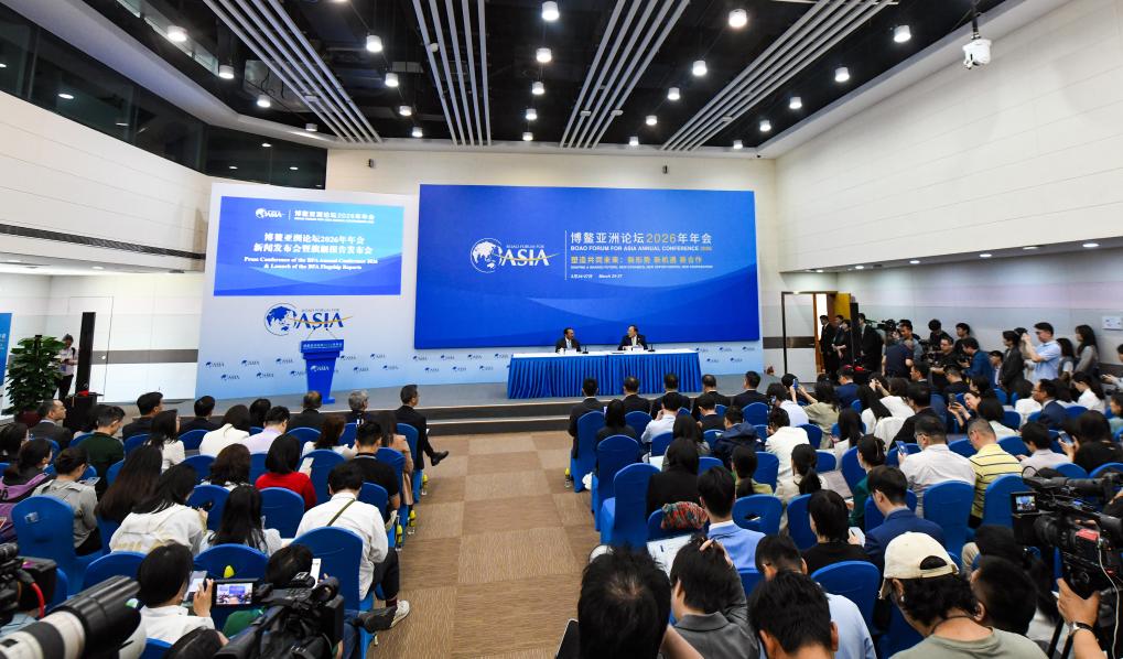 【新華社ボアオ3月24日】中国海南省瓊海(けいかい)市博鰲(ボアオ)鎮で24日、ボアオ・アジアフォーラム2026年年次総会の記者会見と旗艦報告書発表会が開かれた。総会のテーマは「共同の未来を築く:新たな情勢、新たな機会、新たな協力」。今年は60以上の国と地域から代表約2千人が出席し、150近い報道機関から記者1100人余りが集まる。