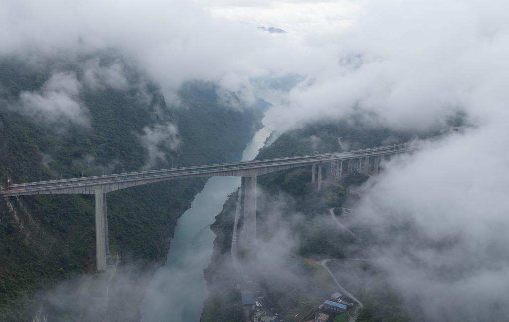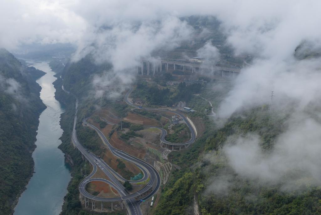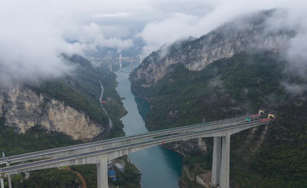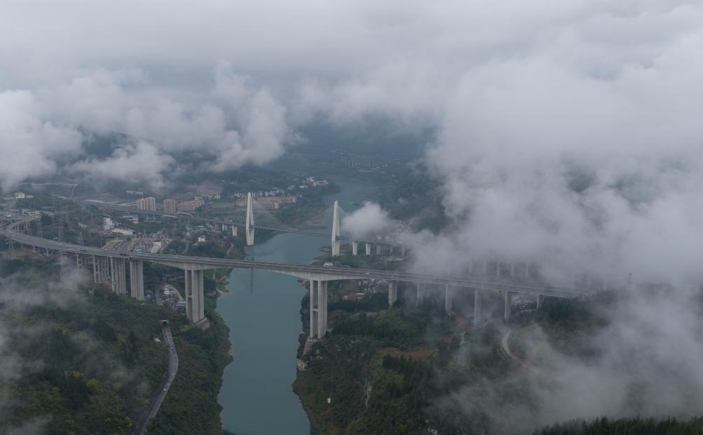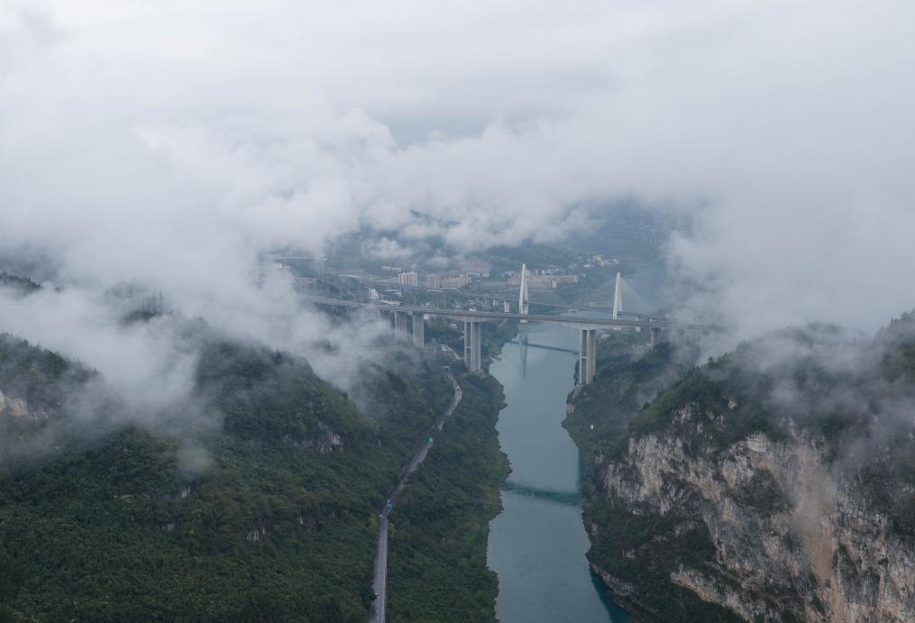 26日、雲と霧に包まれた重慶市武隆区。(重慶=新華社記者/陳誠)