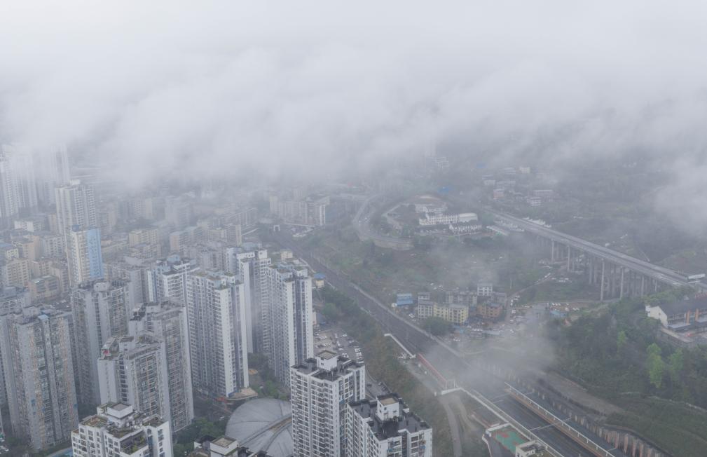 【新華社重慶3月27日】中国重慶市武隆区でこのほど、雨上がりの市街地周辺に朝霧が発生し、雲と霧に包まれた幻想的な景観が広がった。