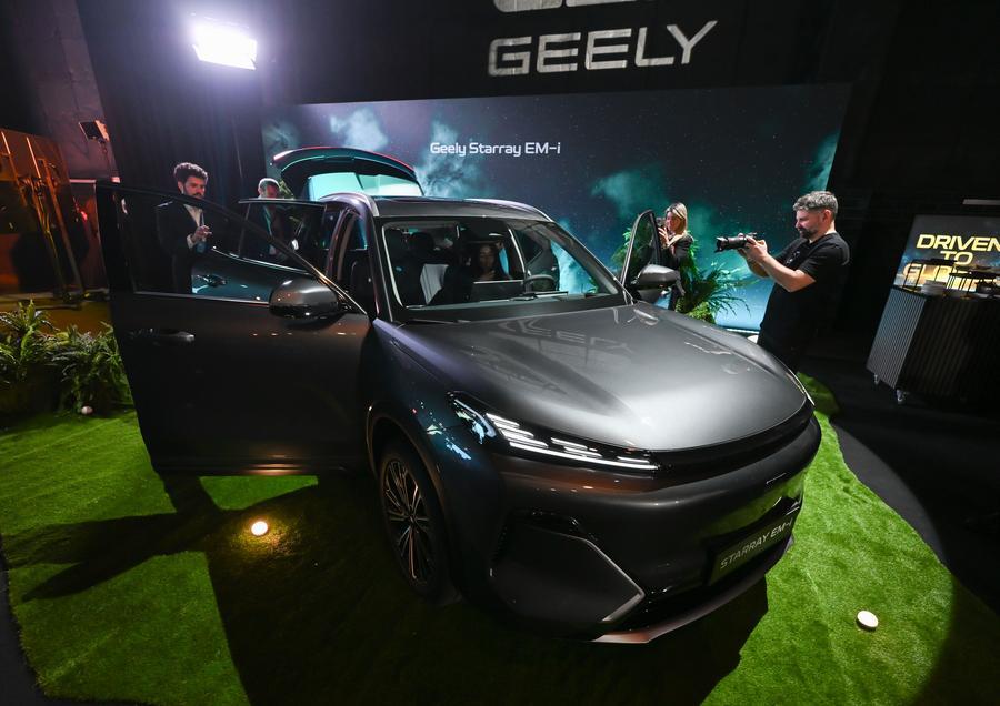 25日、マドリードで発売された吉利汽車の電動SUV「Starray EM-i」。(マドリード=新華社記者/程敏)