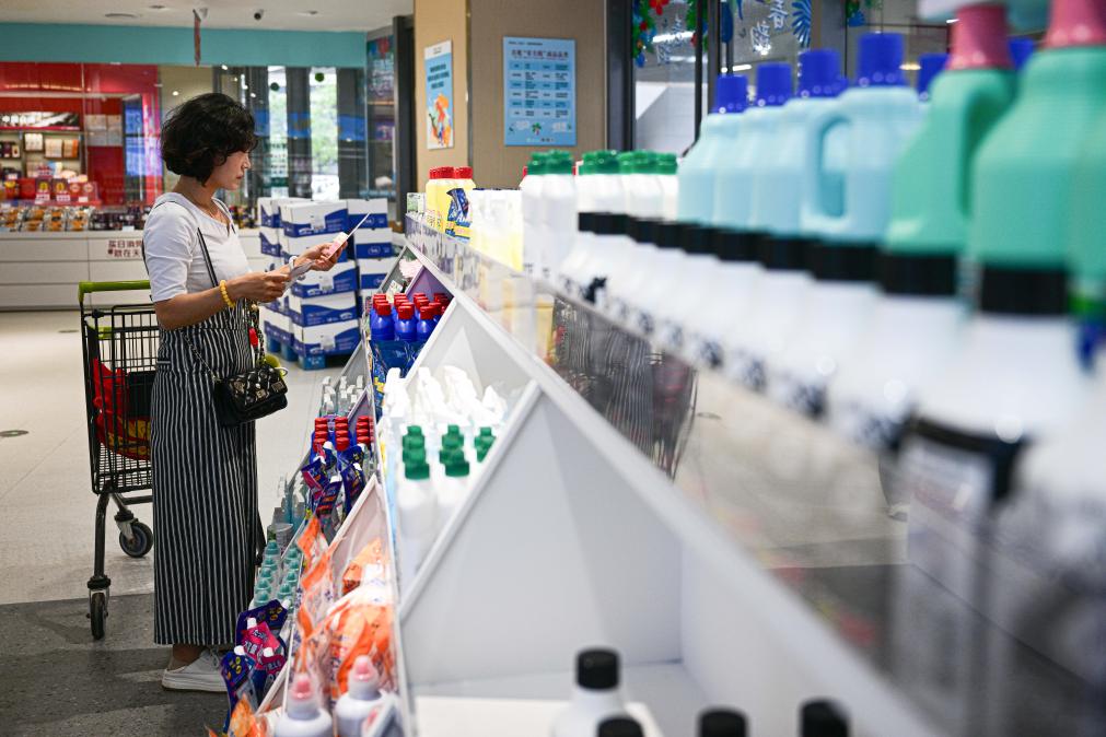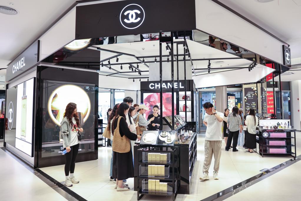 25日、海南省海口市の日月広場免税店で商品を選ぶ客。(海口=新華社記者/張麗蕓)