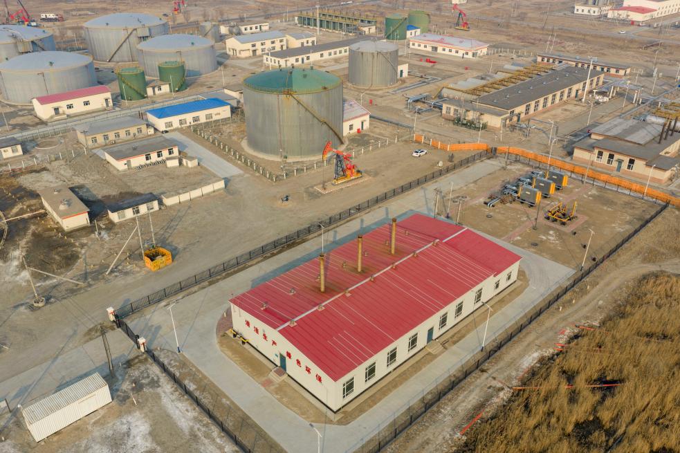 25日、大慶油田初の産業廃熱利用プロジェクト「喇360」ヒートポンプステーション。(ドローンから、大慶=新華社記者/王松)