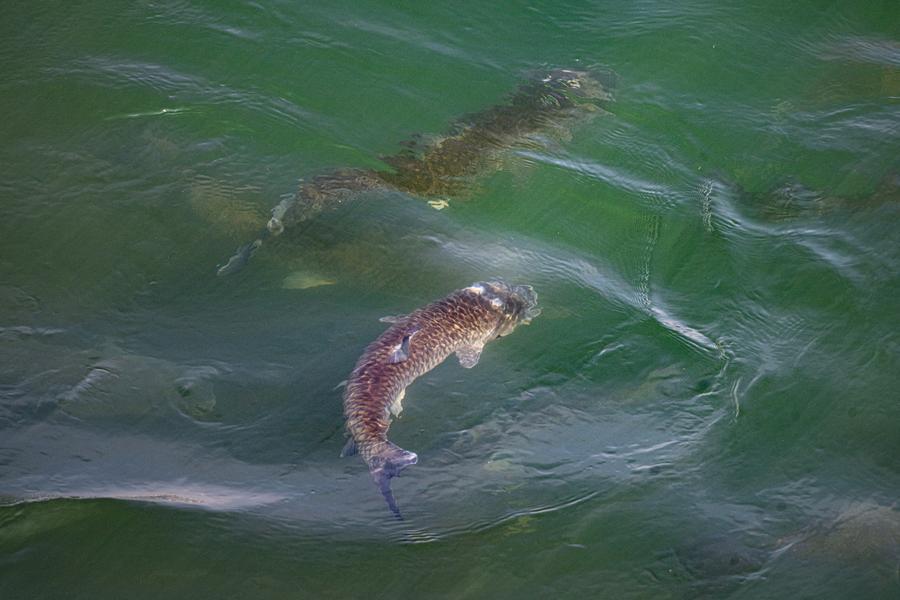 27日、葛洲ダム下流付近を泳ぐ魚。(宜昌=新華社記者/肖芸九)