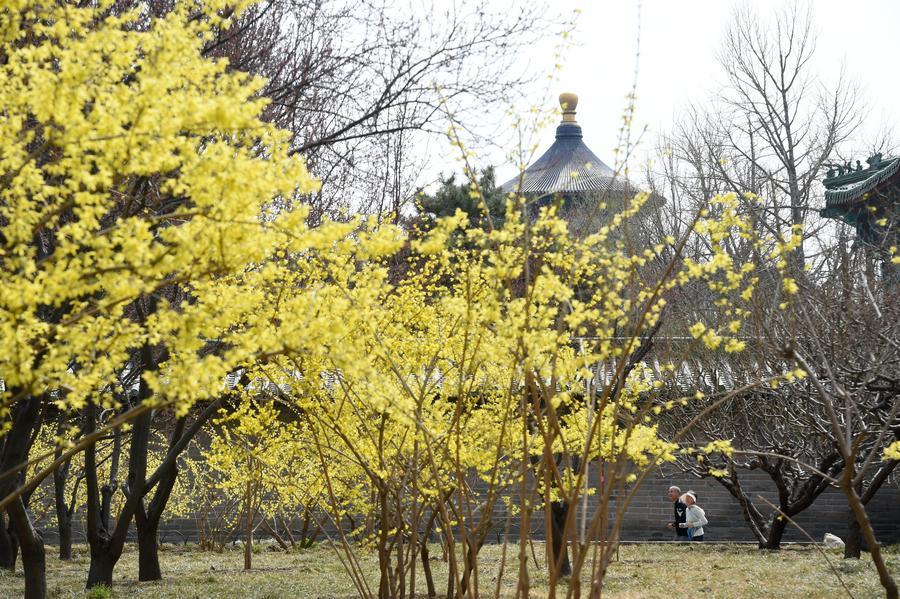 27日、北京・天壇公園を散策する人たち。(北京=新華社記者/羅暁光)